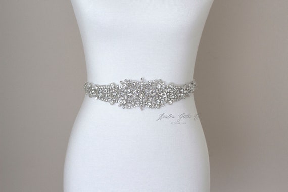 Beaded Bridal Belt, Rhinestone Bridal Sash, Beaded Bridal Sash, Wedding Belt, Wedding Sash B139S by HeirloomGarterCo
