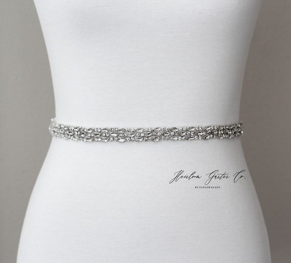 Dainty Bridal Belt, Rhinestone Bridal Sash, Beaded Bridal Sash, Wedding Belt, Wedding Sash Rhinestone Sash B81 by HeirloomGarterCo