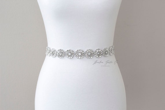 Floral Rhinestone Belt, Crystal Bridal Belt, Bridal Sash, Wedding Belt, Wedding Sash Rhinestone Sash B142S by HeirloomGarterCo