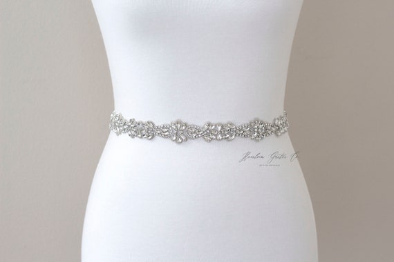 Floral Rhinestone Belt, Crystal Bridal Belt, Bridal Sash, Wedding Belt, Wedding Sash Rhinestone Sash B143S by HeirloomGarterCo