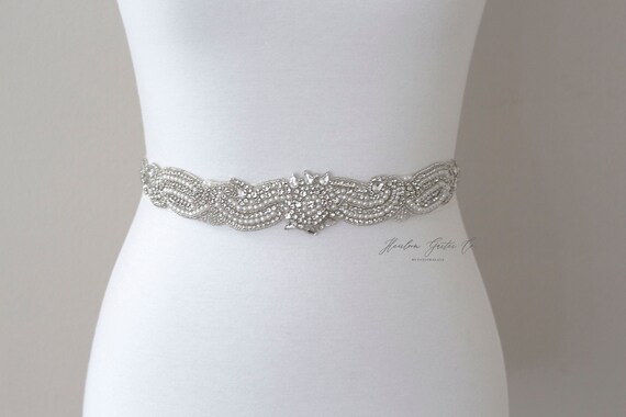 Pearl and Rhinestone Bridal Belt, Rhinestone Bridal Sash, Beaded Bridal Sash, Wedding Belt, Wedding Sash B149 by HeirloomGarterCo