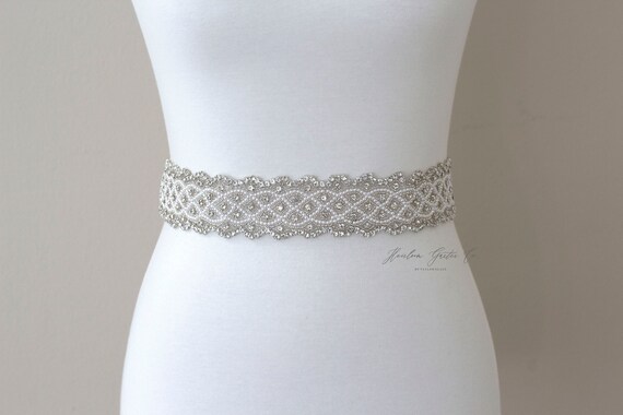 Pearl and Rhinestone Bridal Belt, Rhinestone Bridal Sash, Beaded Bridal Sash, Wedding Belt, Wedding Sash B147 by HeirloomGarterCo