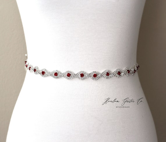 Red Bridal Belt, Rhinestone Bridal Belt, bridesmaid belt, Bridal Sash, Wedding Belt, Wedding Sash Rhinestone Sash B19S RED by HeirloomGarterCo