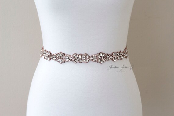 Rose Gold Rhinestone Belt, Crystal Bridal Belt, Bridal Sash, Wedding Belt, Wedding Sash Rhinestone Sash B143RG by HeirloomGarterCo