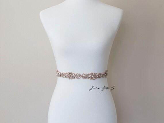 Wedding Dress Belt, Bridal Sash, Wedding Belt, Bridesmaid Belt, Wedding Sash Rhinestone and Pearl Sash, B130RG by HeirloomGarterCo