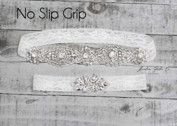 The best thing about my garters is that they are NO SLIP! On my wedding day I wore a garter that was very similar to the ones in this set. I loved the design but I can’t tell you how many times my garter fell off! When my husband and I made our escape to the car after the reception my garter fell off in the parking lot as we were running and I never found it. This inspired me to design beautiful garters that won’t fall off.