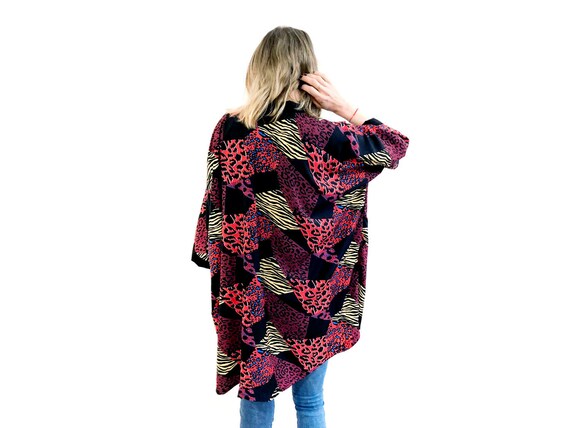 Wild Red and Black Animal Print Kimono, Unique Bold Summer Cover-Ups, One Size / Oversized / Plus Size by ALUMAhandmade