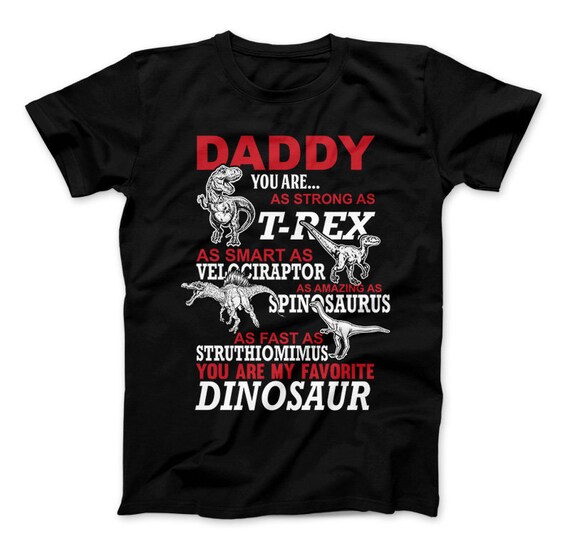 With “Daddy You Are As Strong As T-Rex, Smart As Velociraptor, As Amazing As Spinosaurus, As Fast As Struthiomimus, You Are My Favorite Dinosaur” This shirt is a great gift for any father or super Dino daddy! A great gift for great dad on Father’s Day or anytime you want that special daddy in your life to feel special!
