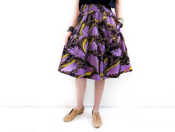 Last one / Purple Abstract Leaf Print Skirt, Unique African Below Knee Summer Skirt by ALUMAhandmade