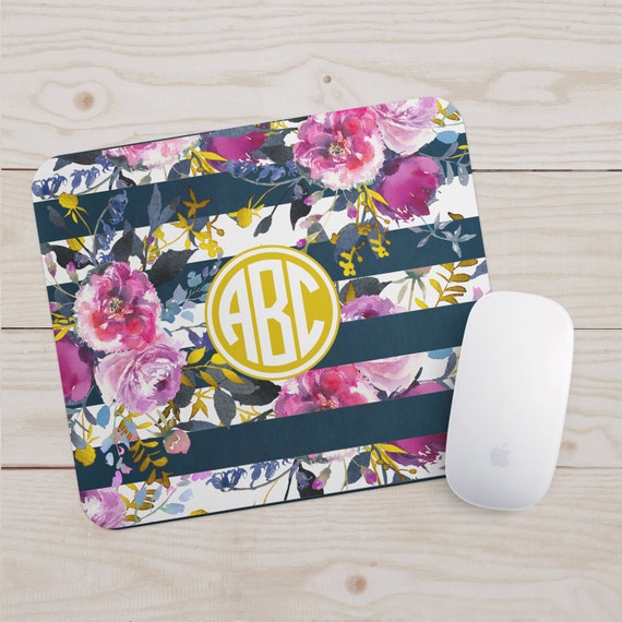 This Navy, Rose & Gold floral watercolor mousepad with your monogram will add a touch of glam to your desk or home office.