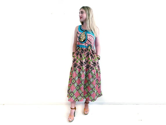 Pink Tank Top Maxi Dress, One of a Kind African Mix Print Summer Dress / Size M by ALUMAhandmade