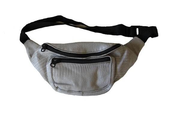 Vintage Fanny Pack Gray Leather Hip Purse with Zipper Pockets by TheBeardedBee