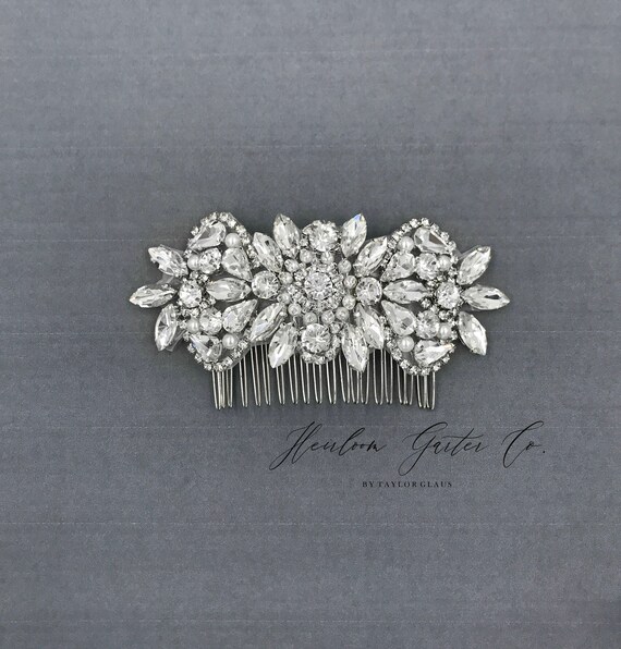 Wedding Hair Comb, Pearl and Rhinestone, Bridal Headpiece, Rhinestone Hairpiece, Hair Tiara, Hair Jewelry, Bridesmaid, Hair Accessory 26 by HeirloomGarterCo