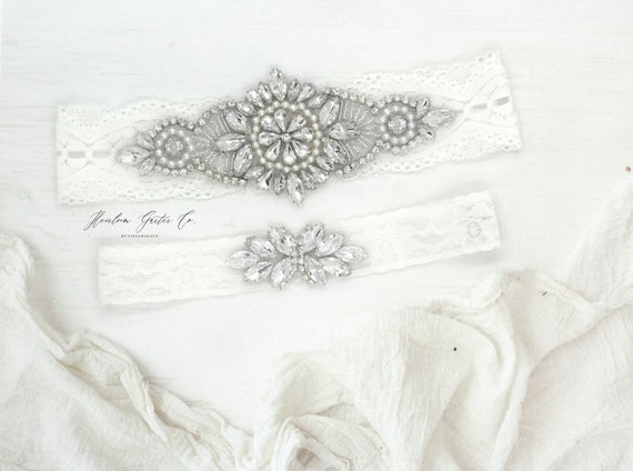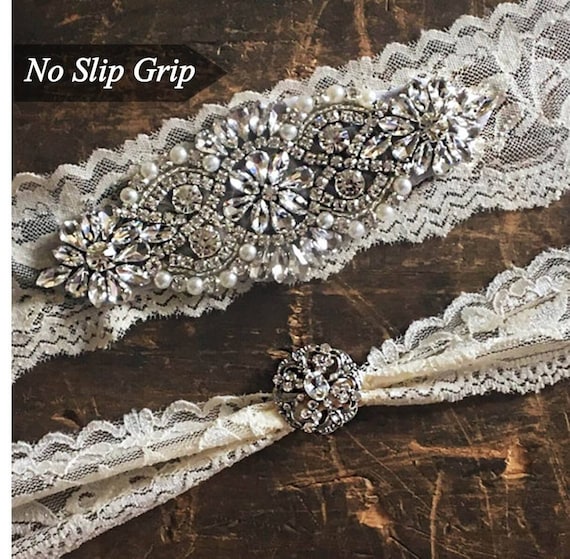 Wedding Garter Set NO SLIP grip rhinestones, bridal garter set, garter A01S-A19S by HeirloomGarterCo