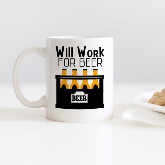 Funny Coffee Mug says “Will Work for Beer”. Makes great gift for the Beer drinker.
