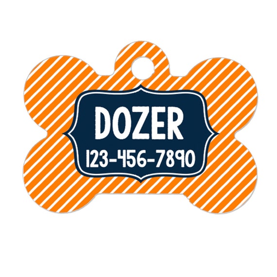 Personalized Dog Name Tag - Dog ID Tag - Boy Dog Custom Dog Collar Tag - Dog Tag Stripe Navy Orange by JoyfulMoose