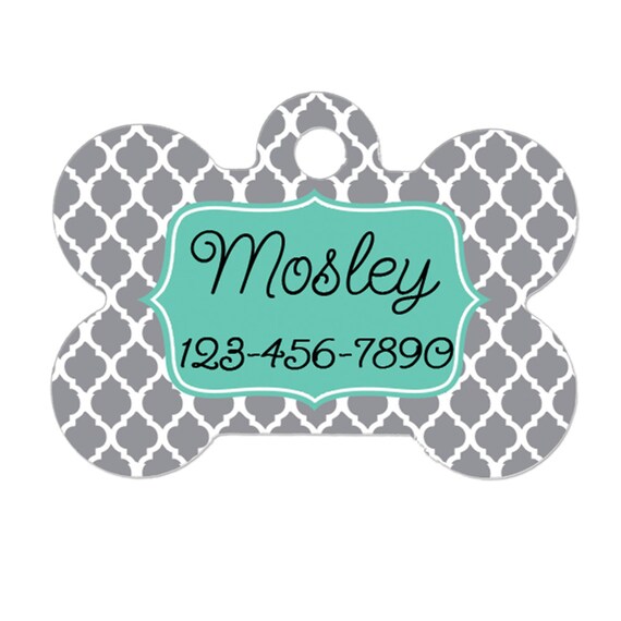 Personalized Dog Tag - Dog ID Tag - Personalized Bone Dog Tag - Pet Gift - Custom Pet ID Tag - Gray Mint by JoyfulMoose