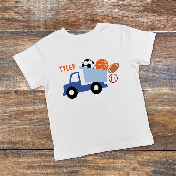 Personalized Toddler Boy Shirt - Blue Dump Truck Boys Tee - Soccer Basketball Baseball Football Boys Tshirt by JoyfulMoose