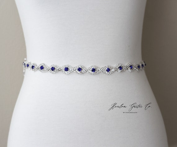 Blue Bridal Belt, Rhinestone Bridal Belt, bridesmaid belt, Bridal Sash, Wedding Belt, Wedding Sash Rhinestone Sash B19S BLUE by HeirloomGarterCo