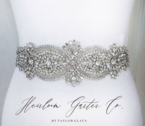 Bridal Belt, Crystal Rhinestone Bridal Sash, Wedding Belt, Wedding Sash Rhinestone and Pearl Sash B33 by HeirloomGarterCo
