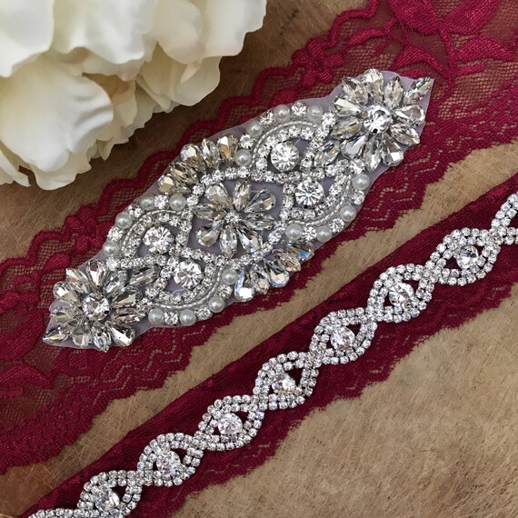Burgundy Red Wedding Garter Set NO SLIP grip vintage rhinestones A01S-A*B19S by HeirloomGarterCo