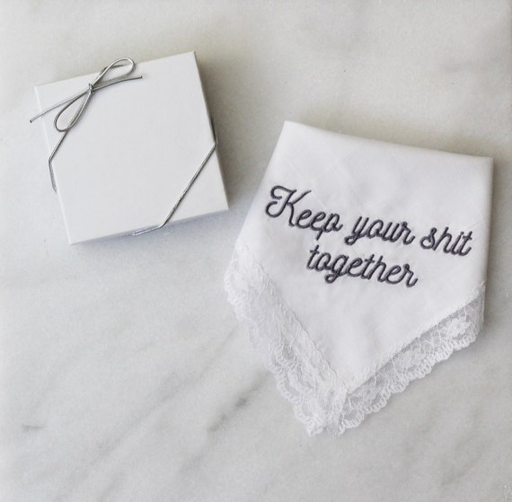 Embroidered wedding handkerchief, custom handkerchief, bridesmaid gift, keep your shit together handkerchief EMBROIDERED Style 006 by HeirloomGarterCo