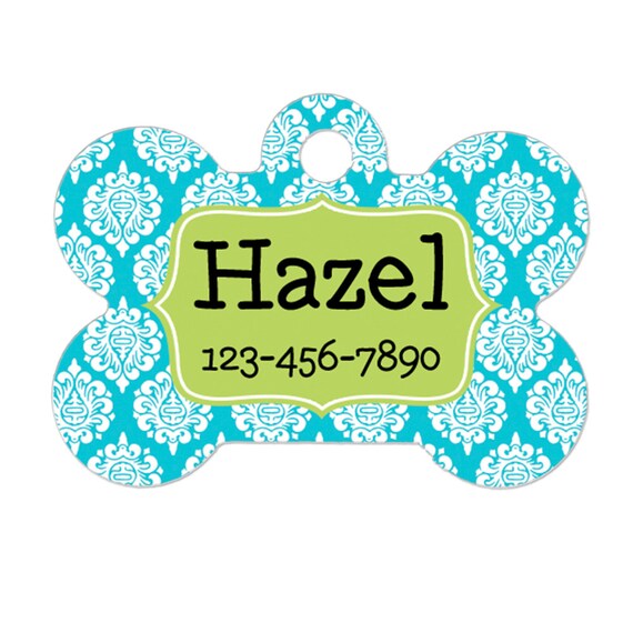 Personalized Dog Name Tag - Dog ID Tag - Aqua Lime Custom Dog Collar Tag - Dog Tag Damask Pattern by JoyfulMoose