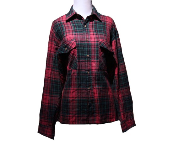 Vintage 80s-90s Flannel in Red, Green & Black Plaid. Can be worn year round and can also be used for holiday photos & Christmas cards!