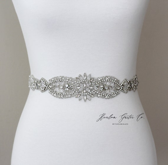 Rhinestone Bridal Belt, Bridal Sash, Beaded Bridal Sash, Wedding Belt, Wedding Sash Rhinestone Sash B32S by HeirloomGarterCo