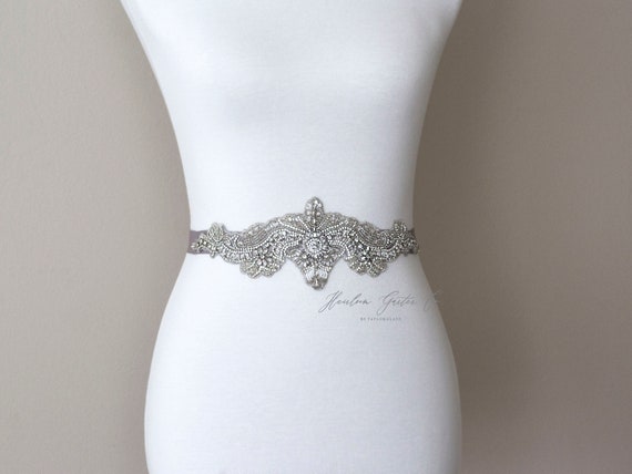 Wedding Dress Belt, Bridal Sash, Wedding Belt, Wedding Sash Rhinestone and Pearl Sash, B132 by HeirloomGarterCo