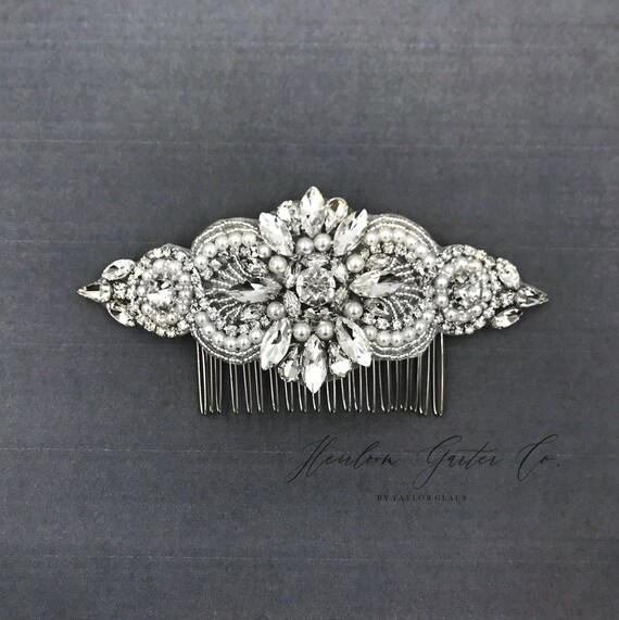 Wedding Hair Comb, Pearl and Rhinestone, Bridal Headpiece, Rhinestone Hairpiece, Hair Tiara, Hair Jewelry, Bridesmaid, Hair Accessory, 04S by HeirloomGarterCo