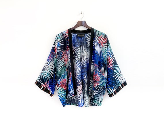 Blue Tropical Print Short Kimono by ALUMAhandmade