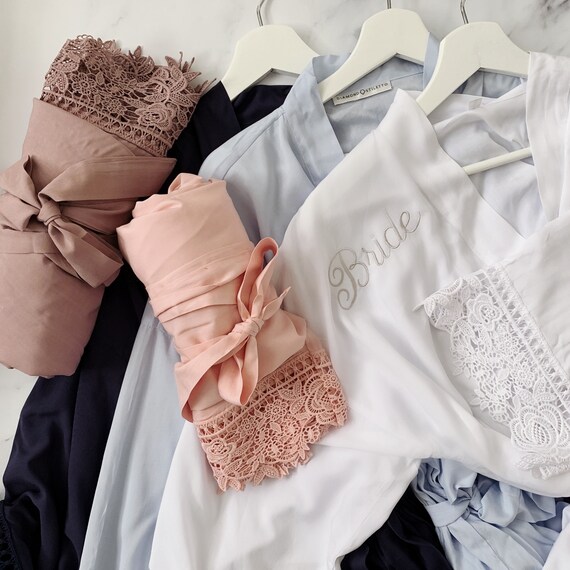 Embroidered Bridesmaid Robes, lace bridesmaid and bridal robes 12 colors by HeirloomGarterCo