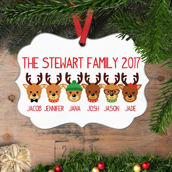 Christmas Ornament Reindeer - Custom Family of 4 Gift Idea under 15 - Black Friday Shopping Christmas Ornaments by JoyfulMoose