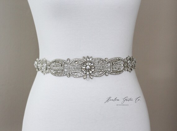 Bridal Belt, Bridal Sash, Beaded Bridal Sash, Wedding Belt, Wedding Sash Rhinestone Sash B53 by HeirloomGarterCo