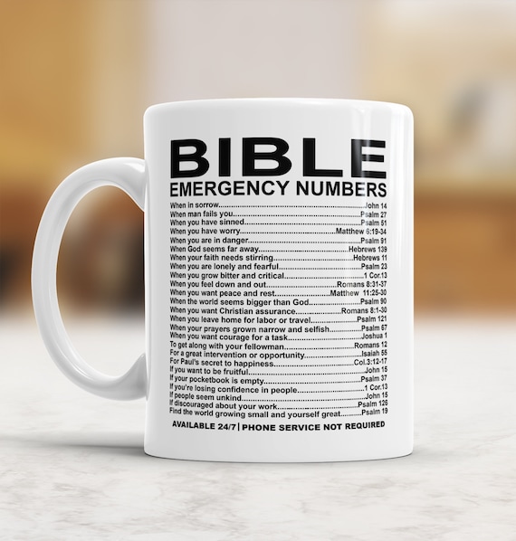 Emergency Bible Numbers Coffee Mug, Bible Mug, Bible Gift, Religious Gift, Scriptures. Looking for the Perfect Gift? Make Someone Smile Today! (Or Treat Yourself!)