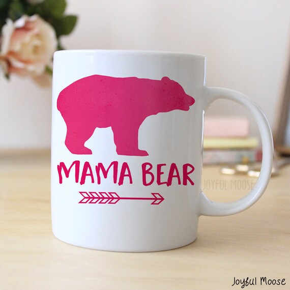 Mothers Day Gift for New Mom - Pink Watercolor Mama Bear 11 or 15 oz Coffee Mug by JoyfulMoose
