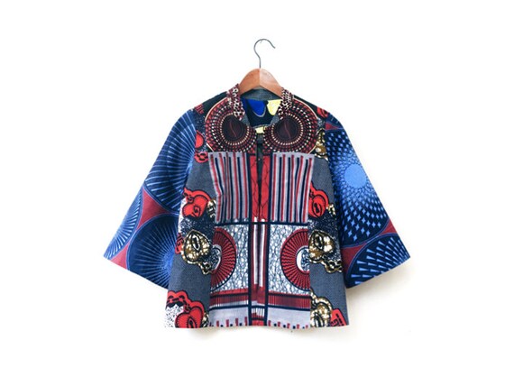 One of a Kind Blue and Red African Blazer, Unique Statement Jacket / Size S by ALUMAhandmade