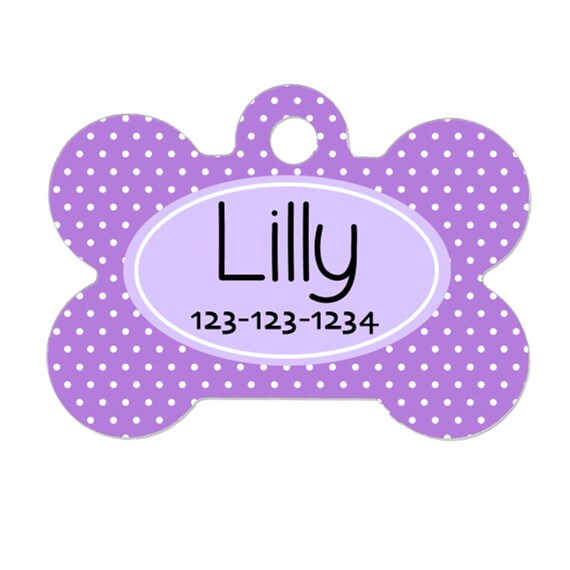 Personalized Dog Tag - Dog ID Tag - Personalized Bone Dog Tag - Pet Gift - Custom Pet ID Tag - Lavendar Purple Polka Dot by JoyfulMoose