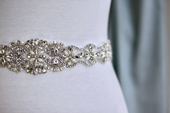 Rhinestone wedding belt, Bridal Sash, Wedding Belt, Wedding Sash Rhinestone and Pearl Sash B02S by HeirloomGarterCo
