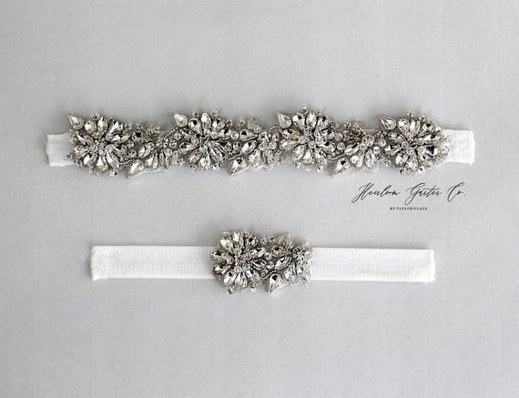 Rhinestone Wedding Garter Set , Elegant Wedding Garter, bridal garter EB59-EB59 by HeirloomGarterCo