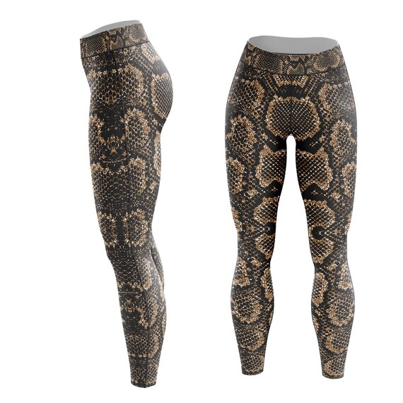 Snake Print Leggings - Animal, Skin, Yoga, Athletic, Casual, Gym - Polyester Spandex, Comfortable Leggings. by TampaClothingCompany