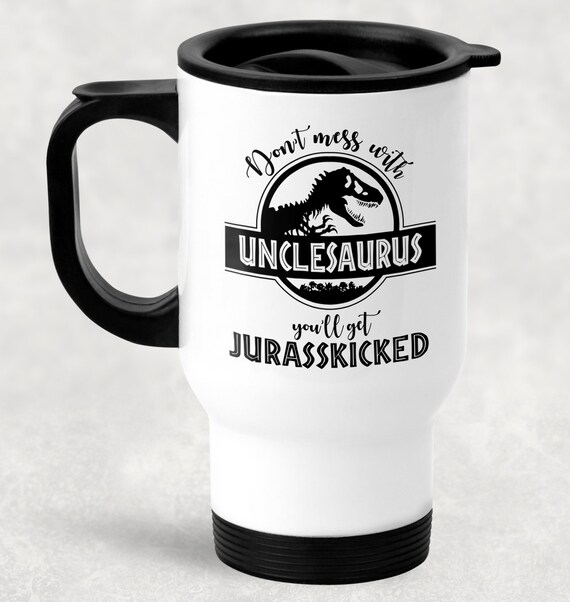 Unclesaurus Stainless Steel 14 oz White Travel Mug, Don't Mess With Unclesaurus You'll Get Jurasskicked, Coffee Mug For Uncle by LoveFamilyAndHome
