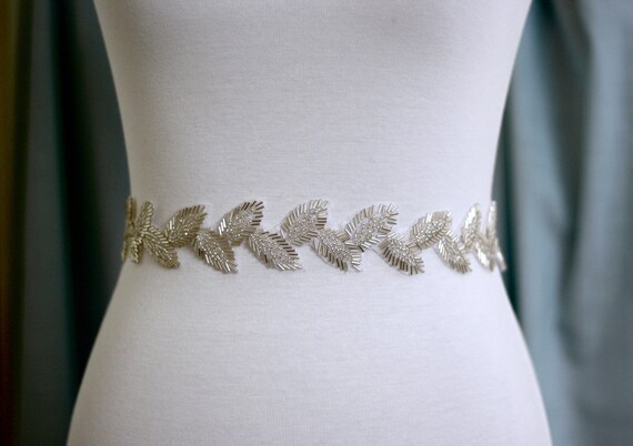 Boho Bridal Belt, Leaf Boho Bridal Sash, Wedding Belt, Wedding Sash Rhinestone and Pearl Sash, B31S by HeirloomGarterCo