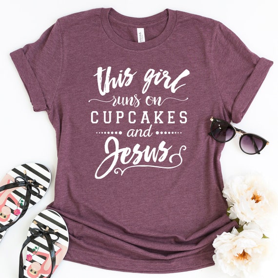 Christian T shirt - This Girl Runs on Cupcakes & Jesus Gray Tee for Her - Christian Shirt - Christian Apparel - Jesus Tee by JoyfulMoose