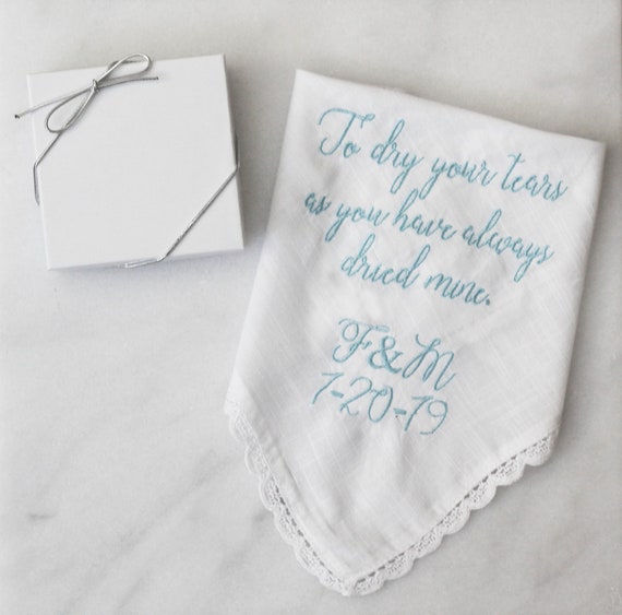 Embroidered wedding handkerchief, custom handkerchief, mother of the bride gift EMBROIDERED style 004 by HeirloomGarterCo