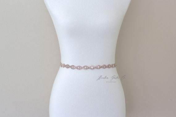 Rose Gold Rhinestone Belt, Crystal Bridal Belt, Bridal Sash, Wedding Belt, Wedding Sash Rhinestone Sash B19RG by HeirloomGarterCo